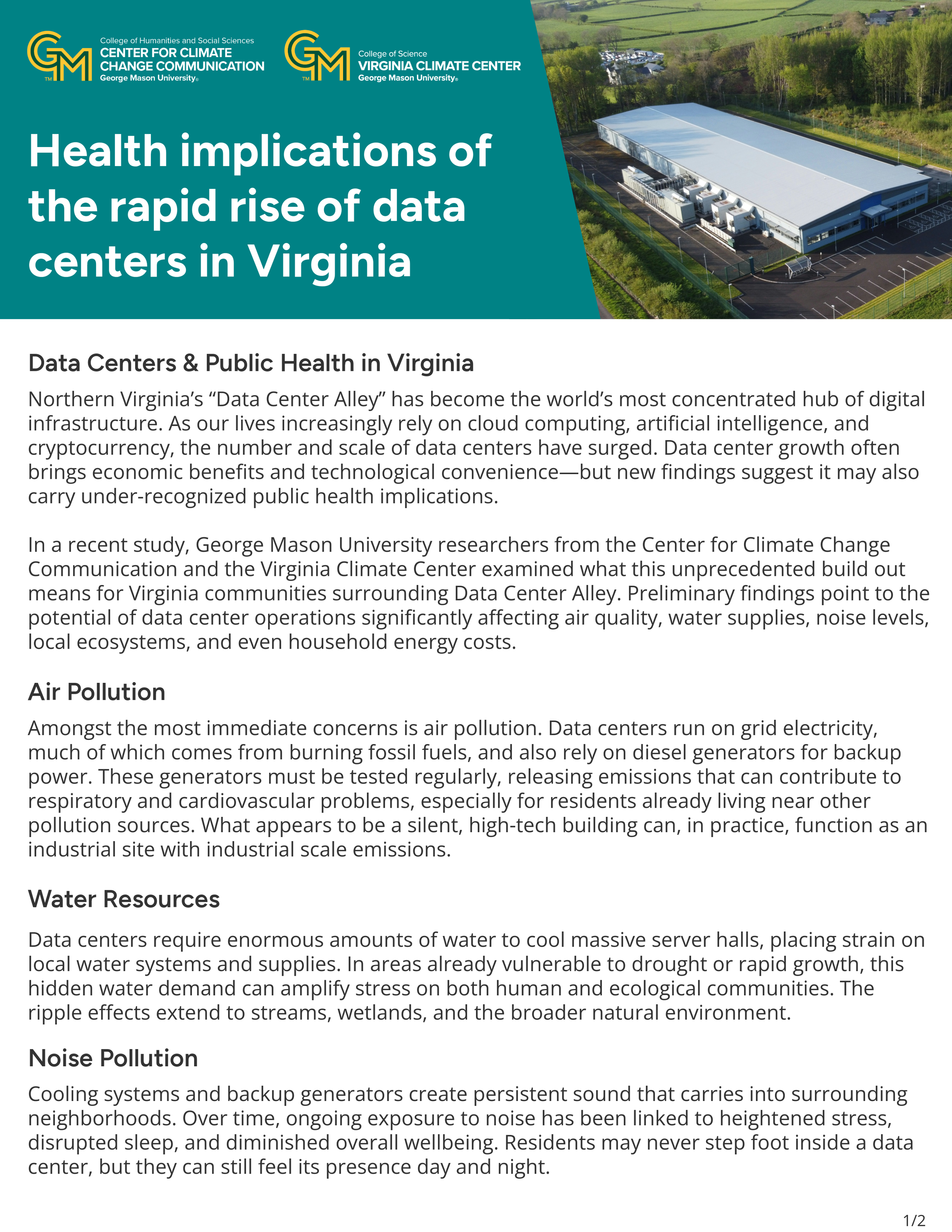 Summary: Health implications of the rapid rise of data centers in Virginia